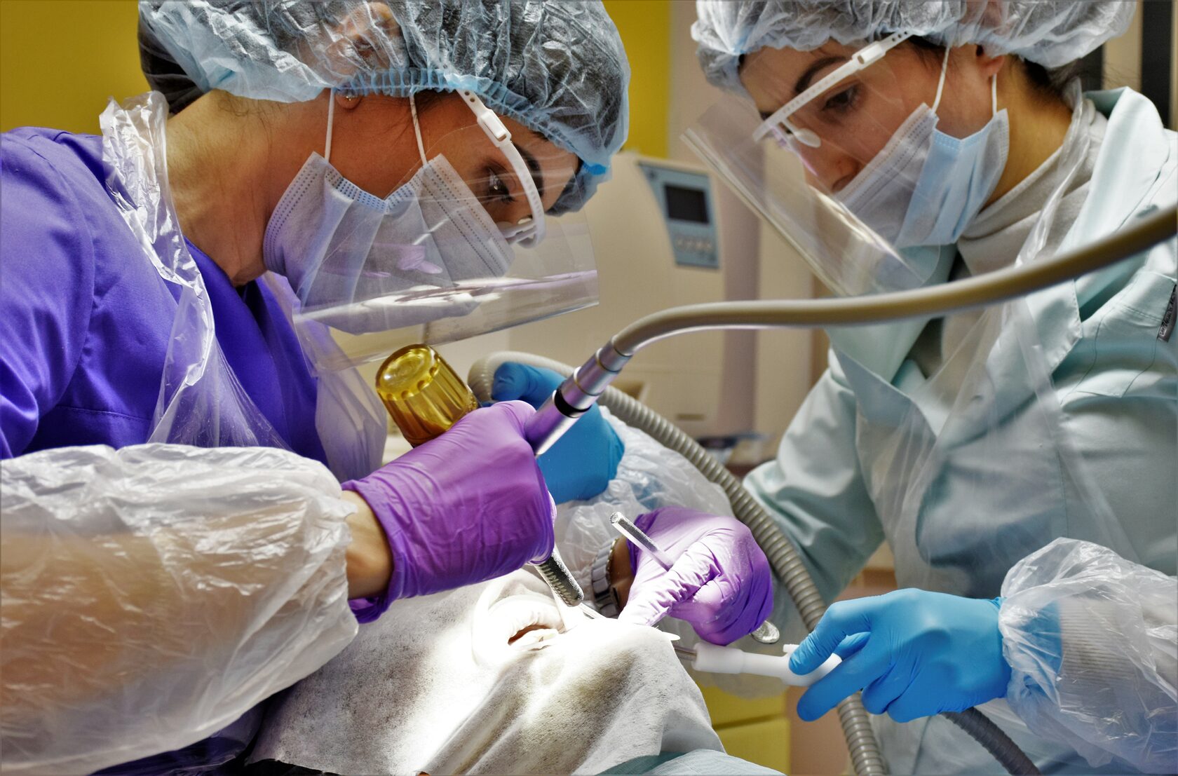 Выполняется полировка зубов специальной пастой.